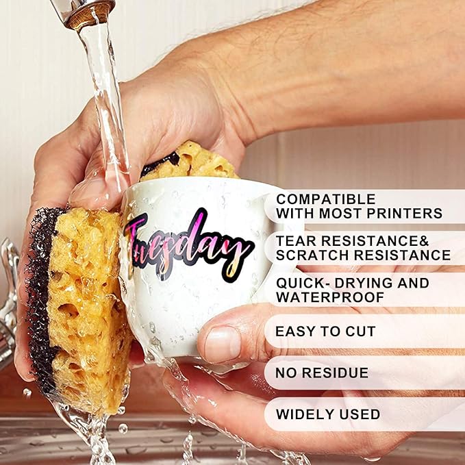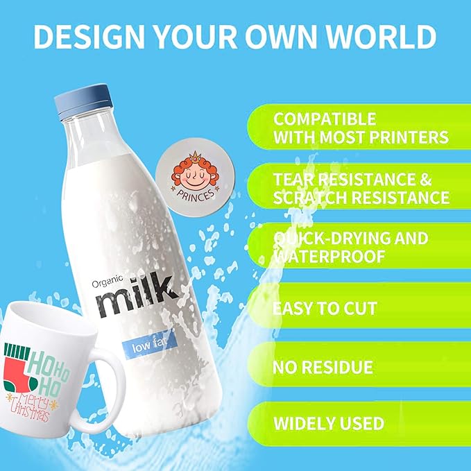 - 【𝐒𝐞𝐥𝐟-𝐀𝐝𝐡𝐞𝐬𝐢𝐯𝐞&𝐖𝐚𝐭𝐞𝐫-𝐑𝐞𝐬𝐢𝐬𝐭𝐚𝐧𝐭 𝐒𝐭𝐢𝐜𝐤𝐞𝐫𝐬】Printable Vinyl Sticker Paper Frosty Clear for Inkjet Printer 10 Sheets Transparent,US Standard Letter Size - 8.5"x11" ,It suitable for High resolution and clear image quality,And create beautiful water-resistant labels and stickers,Allows use vinyl stickers both Indoors and Outdoors,Simply seal the sticker with a UV resistant sealer spray to boost.Waterproofness and Durability.Labels can be removed without any sticky residue