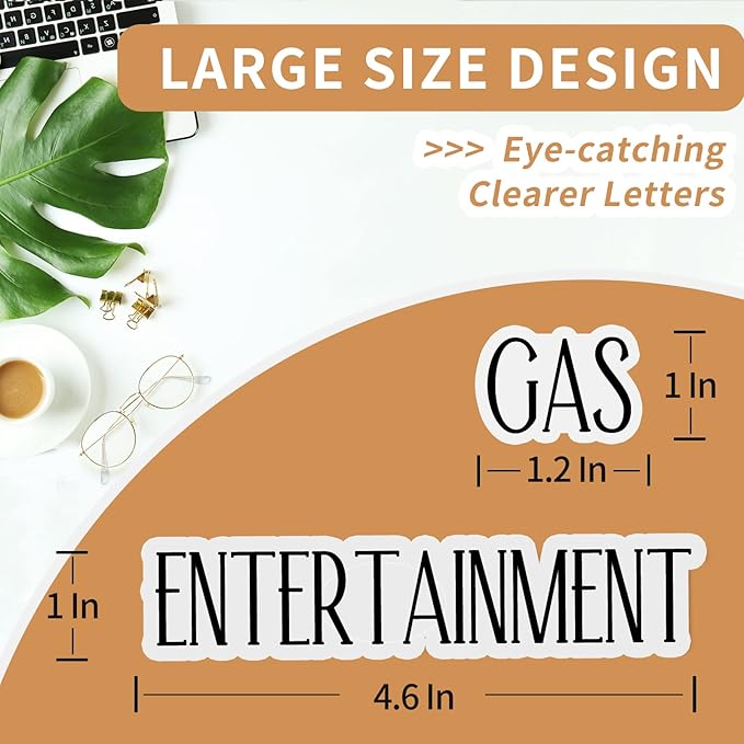 - GENEROUS LABEL SIZE & EXQUISTE CUTTING: Each sticker paper sheet includes 8-12 budget category words on it, each word measures about 4.2"x1.2". These cash envelope label stickers are individually pre-cut with transparent edge, easy to tear off and paste into your monthly planner, calendar, agenda or coupon organizer.
