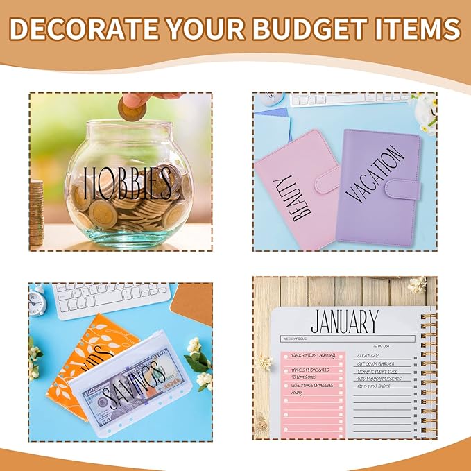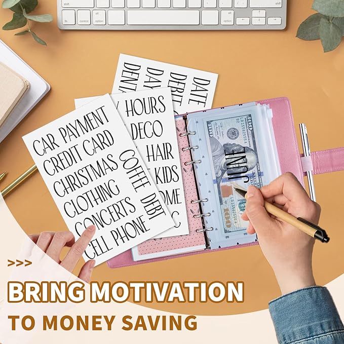 - GET ORGANIZED & PRETTY GIFTS: OOUUREC Planner Stickers intend to give your office organizer a sense of inspiration, help simplify budget envelopes and get a6 binder or zipper pouch organized. The budget labels for savings binder is ideal gift for women to personalize cash wallet budget system, increase goal achievement rate by enjoying the budgeting process.