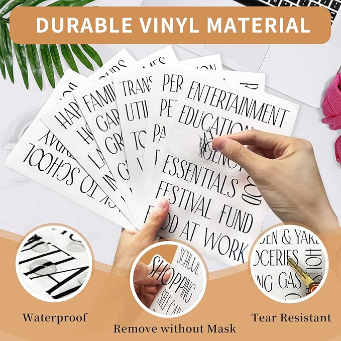 - RELIABLE VINYL DECAL MATERIAL: The cash envelope labels for money saving binder are preprinted on water-resistant, transparent vinyl with a self-adhesive backing that resists peeling and tearing, just remove or replace the stickers on cash envelope wallet as needed. Stickers are easy to apply and durable for long time use.