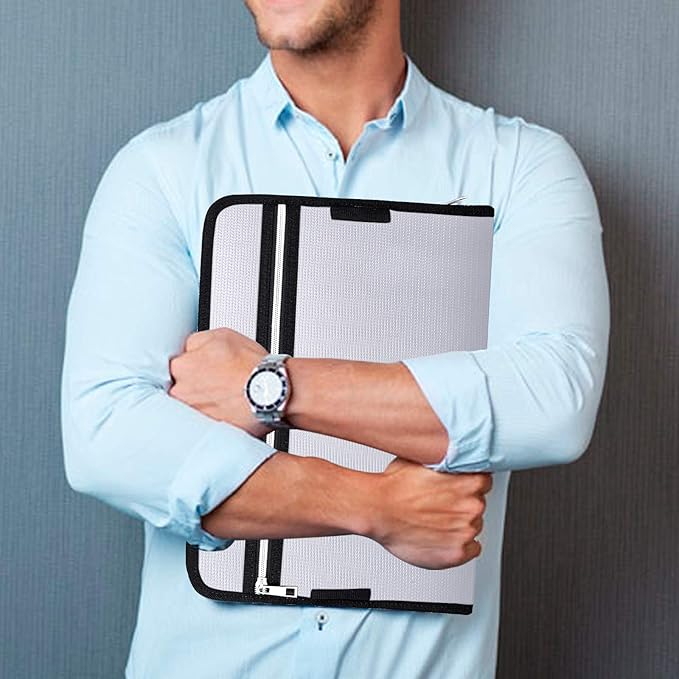 - [Fireproof &Waterproof Document Organizer ]:The surface is made of high-quality black non-itching liquid silicone coated fireproof glass fiber. The function of this material is mainly fireproof and waterproof. This is an excellent FIRE and WATER RESISTANT file bag that is durable and not easy to break. The purpose of using this material is to the greatest extent Protect the files inside,it is worth your trust.