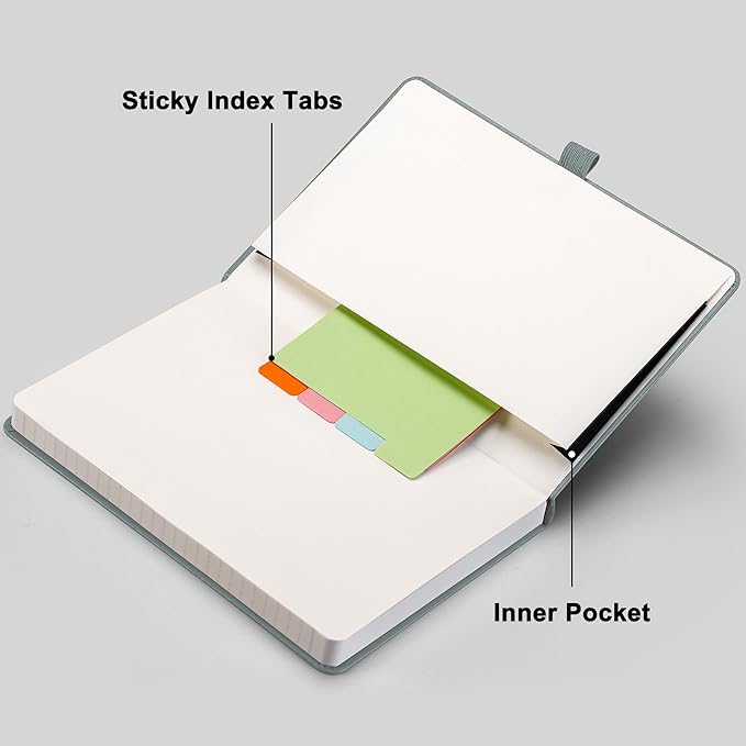 - RETTACY NOTEBOOK JOURNAL: RETTACY Notebook Journal comes in a A5 (5.7'' × 8.3') size, 160 Sheets/320 Numbered Pages, waterproof and smooth Leather Hardcover, 7 mm college ruled writing space, 100 GSM Acid-free Paper, Inner Pocket, Sticky Notes, 2 Ribbon Bookmarks, Elastic Closure Band