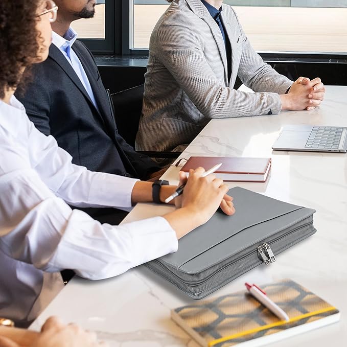 Calfinder Portfolio for Men, Zippered Vegan Leather Padfolio for Women, Business Portfolio Organizer Folder, Professional Padfolio with A4 Notepad Holder for Interview/Meeting, Office Gifts, Gray
