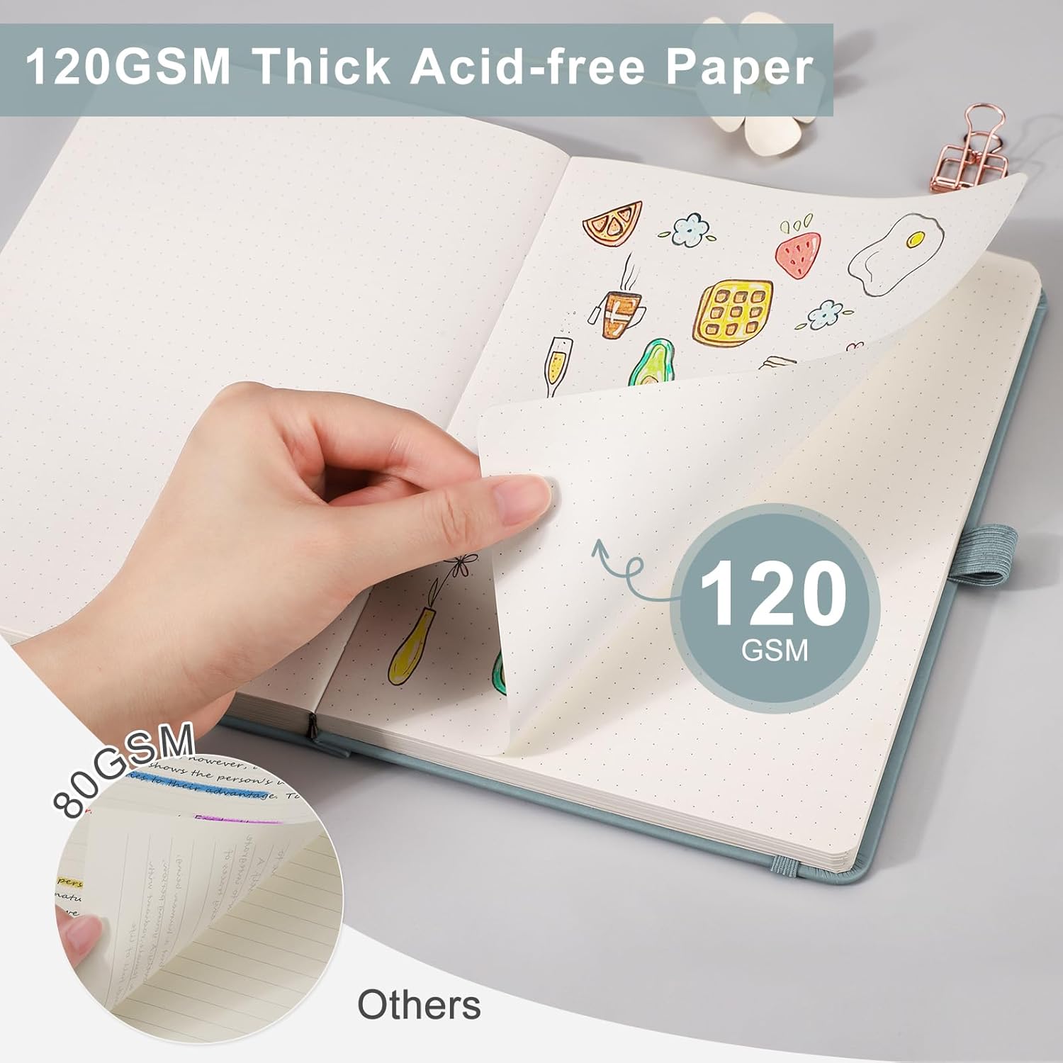 - 120 GSM Quality Paper: EMSHOI dotted paper notebook adopts 120 gsm acid-free Paper with a smooth touch, avoids ink bleeding through and feathering, and will provide you with a happy journal experience