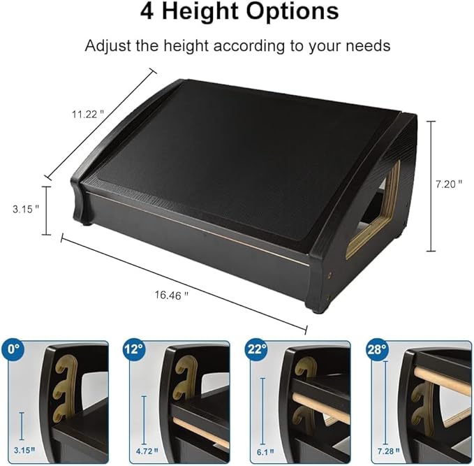StrongTek Ergonomic Under Desk Footrest, 3 Adjustable Heights Wooden Office Footrest, Large Anti-Slip Surface, Improves Posture and Blood Circulation, up to 400lbs (Black)