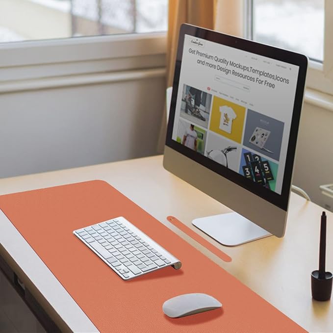 Boutilon Leather Desk Pad 30" x14",Non-Slip Mouse Pad,Office Desk Mat,Waterprooft PU Leather Desk Blotter,Desk Pad Protector,Desk Writing Pad for Home Office Decor (M-Orange H)