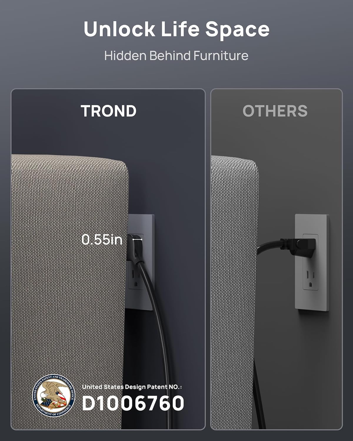 - 15ft extension cord flat plug - Made of 14awg pure copper, the 15-foot long power cord is heavy-duty and has better current carrying capacity (15A). The low-profile space-saving 45° angled flat plug doesn’t block the bottom receptacle