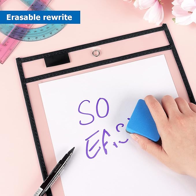 - Application: These oversized reusable dry erase pockets make it easy to store your valuable documents, perfect most of the student activity sheets, work files, office documents, job ticket orders and more.