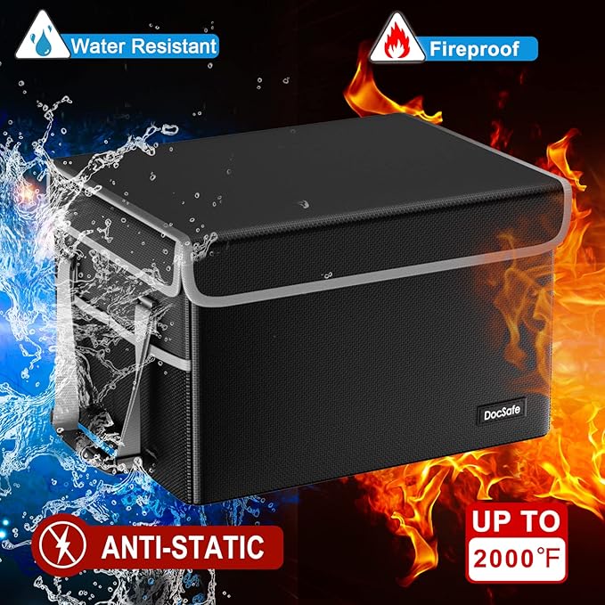 - Fireproof and water-resistant safe: Fireproof file box is made of anti-static double layered non-itchy silicone coated fiberglass which stands up the temperature up to 2000℉.It has been passed by SGS TEST(UL94 VTM-0 Certified).The fireproof box is fireproof and waterproof, which can effectively protect your important documents in a fire, flood, and wet weather. They will further keep your files intact. Nothing is completely foolproof, but added protection is always a good idea.