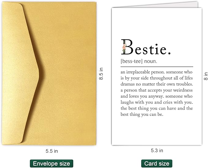 - Elegantly printed on sturdy and heavyweight card stock. Perfect gift for bestie.
