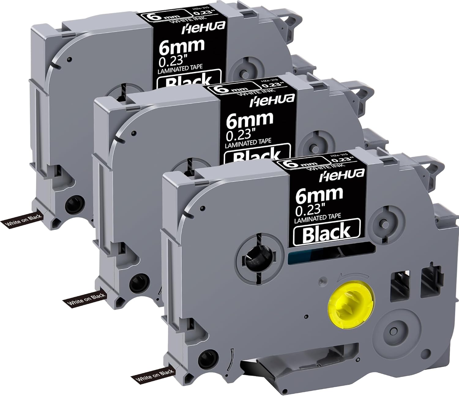 Hehua Tape Tze Tz 6mm 0.23 Laminated Black Compatible for Brother P-Touch TZe-315 TZe315 TZ-315 TZ315 Tape for Ptouch PT D200 D210 D220 D610 H110, 1/4'' x 26.2ft White on Black, 3 Pack