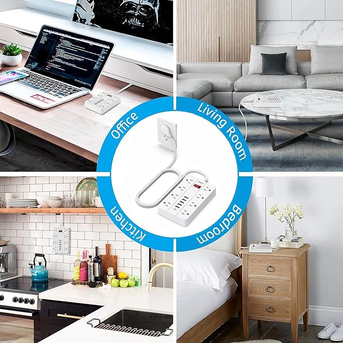 - Widely Spaced Outlets Fit for Big Plugs:8 AC power sockets are designed to be wider, so the power adapters will not interfere with each other,Ideal for multiple devices charge together, whether as a desktop power strip or a nightstand charging station, it can be competent
