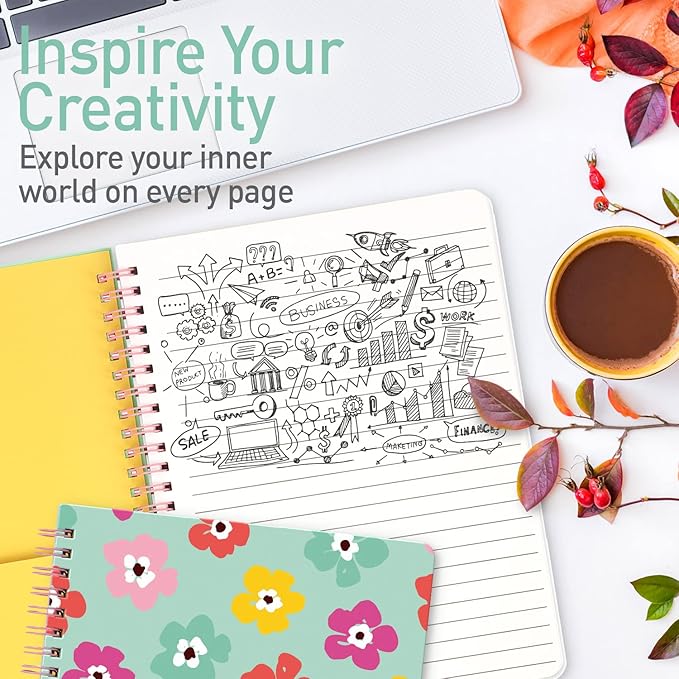 Sweetzer & Orange S&O Cute Spiral Notebooks - College Ruled Spiral Notebook with Pockets - Hardcover Notebook for Women - Cute Notebooks for School & Journal - 80 Double-Sided Pages, 6.25" x 8.25”