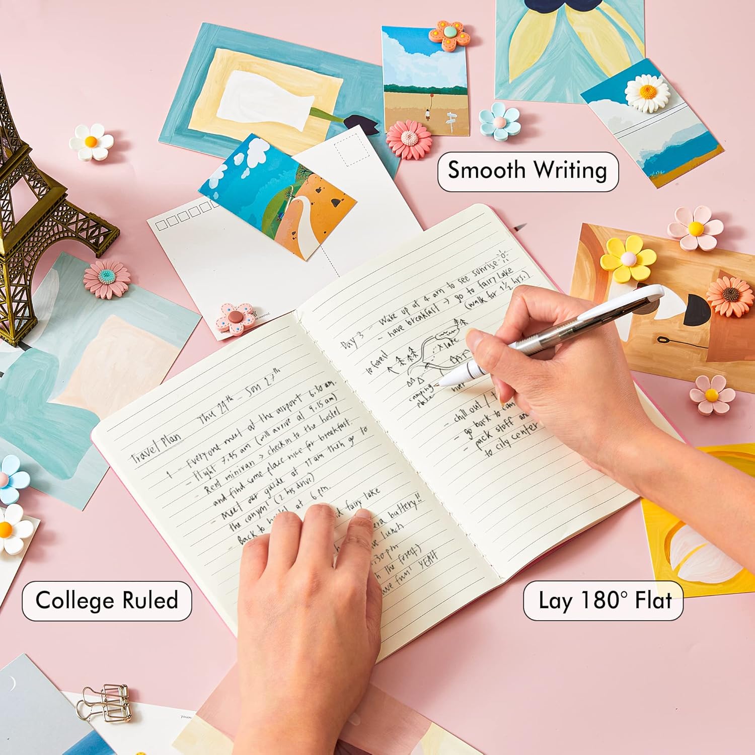 - Feela 8 Pack Soft Cover Journals include 8 pink A5 college ruled soft cover travel journals. 250 GSM colored paper cover outside and 80 GSM smooth writing lined pages inside.