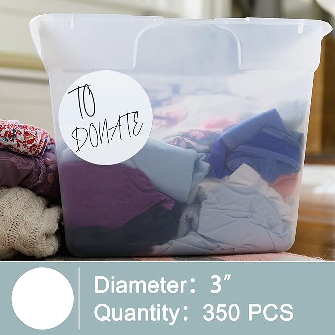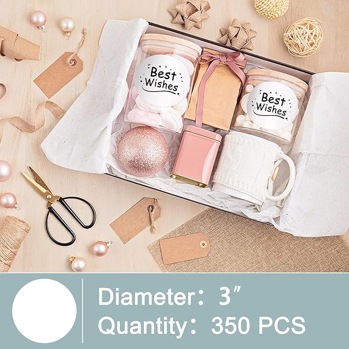 Hybsk 3 inch Circle Color Direct Thermal Stickers Shipping Labels for Barcodes,Name Tag,DIY Logo Design,QR Code,Inventory-350 pcs (3 inch,White)