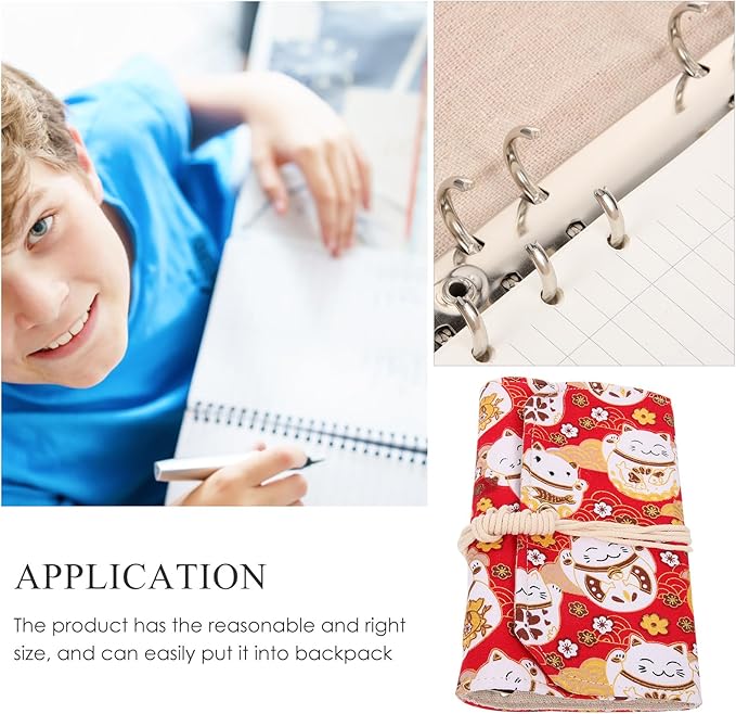 Tofficu A6 Budget Binder Japanese Maneki Neko Lucky Cat 6 Ring Planner Notepads Money Organizer Cotton and Linen Notebook Cover for Cash Bills Coupon Budgeting Expense Saving