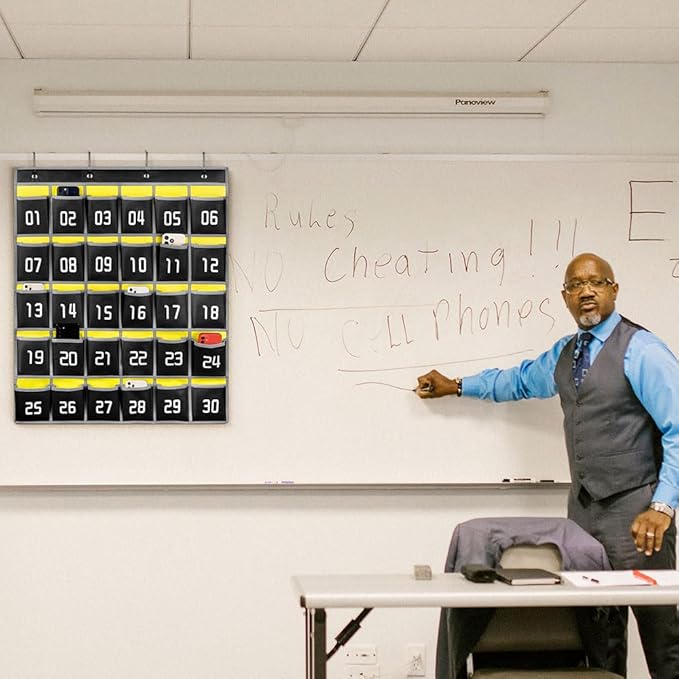 - 【Cell Phone Pocket Chart for Classroom】Used as classroom phone storage and calculator storage. Perfectly to hold students cell phone, calculators in class. Let students focus more on learning, say goodbye to students playing with their phones in class and create an efficient classroom.