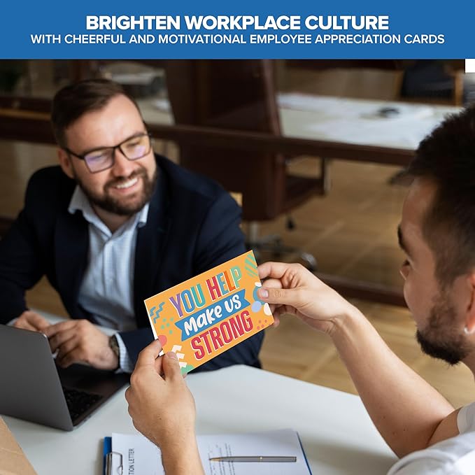 - THICK EMPLOYEE CARDS - Made of sturdy 250gsm cardstock, these thank you cards for employees appreciation are cut perfectly with no jagged edges. These recognition cards for employees & work thank you cards give you ample space for your messages.