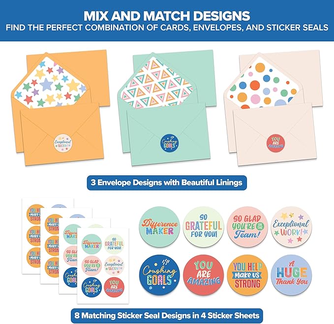 - UPLIFT TEAM MEMBERS - Mix & match these thank you for your service cards & gratitude cards! A total of 24 work thank you cards in 8 designs, 3 envelope designs with pre-water soluble gum closure and printed lining, and 24 sticker seals in 8 designs.