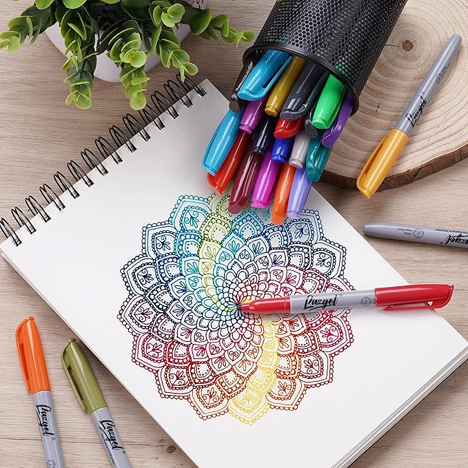 - Lazgol 32 assorted colors premium ultra fine point permanent markers, mark on paper, glass,ceramic, plastic, wood, rock, metal and almost all surfaces.
