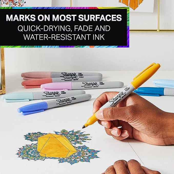 Sharpie Permanent Marker Pens Gift Set | Unicorn Money Box & Marker Pens | Fine Point | Assorted Mystic Gem Colours | 16 Count | Unicorn Gifts for Girls & Boys