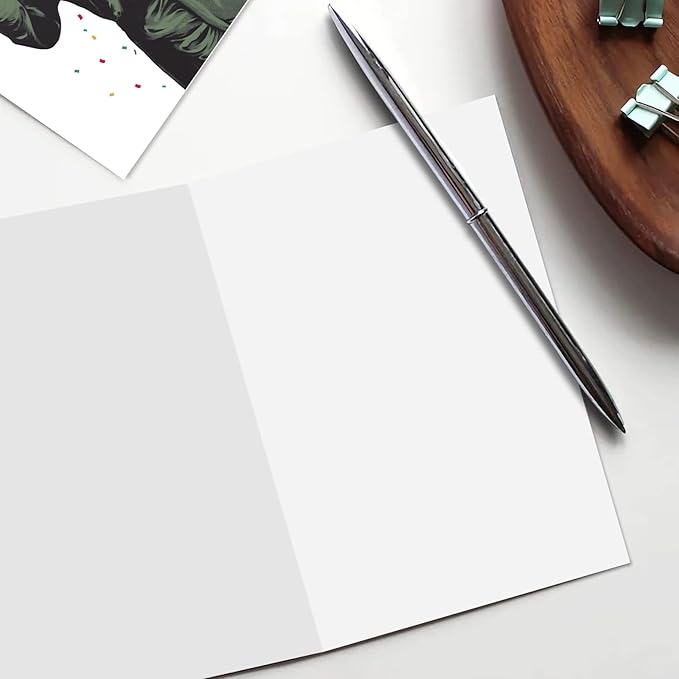 - Printed on quality 300 gsm recycled, smooth card stock and comes with a matching red envelope