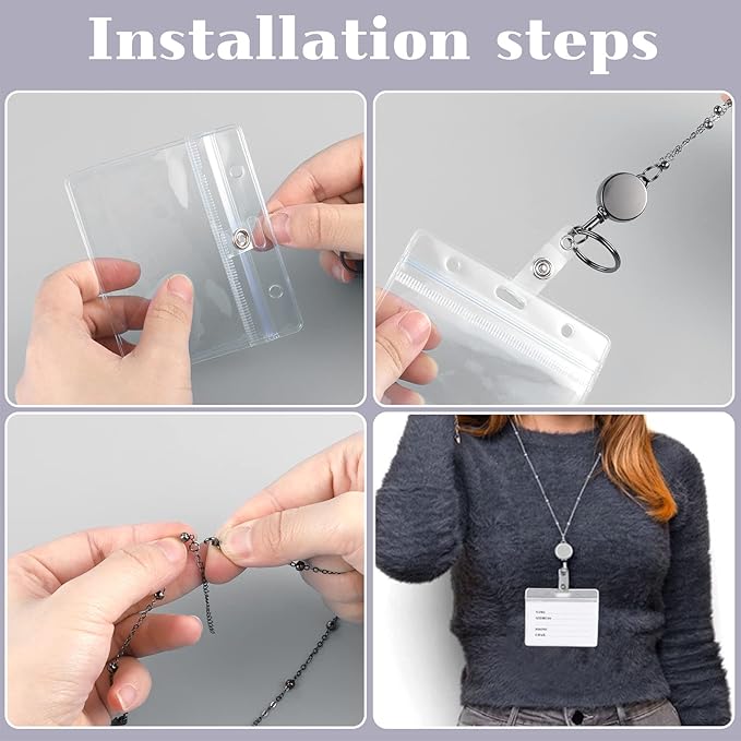 - 【Value Combination】3 Pcs beaded badge lanyards, three colors of black,silver and bright blue; 3 pcs retractable reel clip; 6 pcs waterproof badge holders, horizontal and vertical two styles, easily meet your different needs