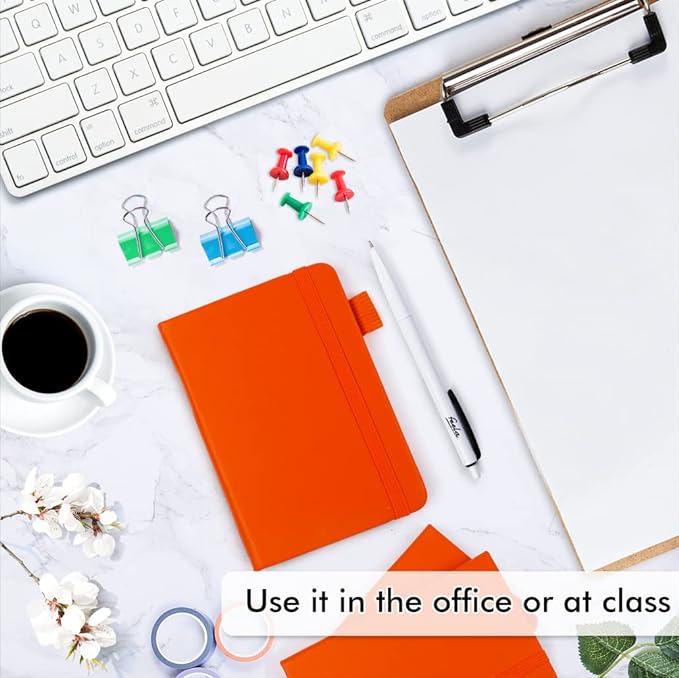 feela 15 Pack Pocket Small Notebooks Bulk, Mini Cute Notepads Hardcover College Ruled Lined Journals with Pen Holder for School Business Memos, with 15 Black Pens, 3.5”x 5.5”, A6, Orange