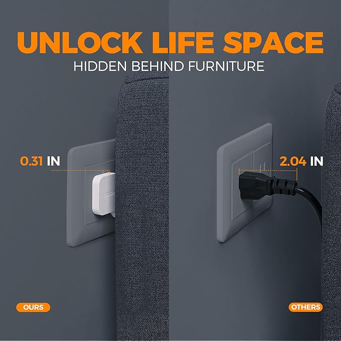 - Extra Long Cord 15 Ft: 0.31in flat cord and 15 feet extension cord can more flexibility to reach distant outlets and hard to reach places ; 45 degrees right angle design creates an extra space for other plug below without blocking