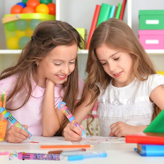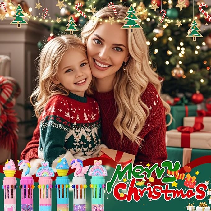 Multicolor Ballpoint Pen 0.7 mm, 10-in-1 Colored Pens Fine Point Retractable Cute Cartoon Unicorn Ballpoint Pens for Office School Students Kids Christmas Gift, 6 Pack