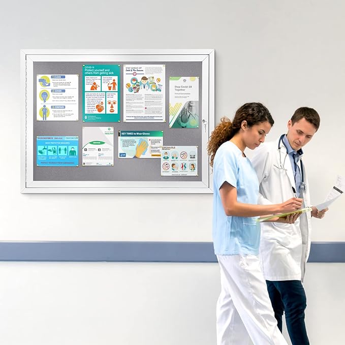 SWANCROWN Enclosed Bulletin Board Grey Felt Displays Boards Weather Resistant Wall Mounted Notice Case,37x28inches