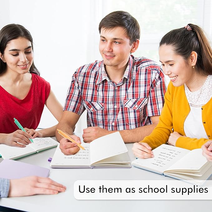 - 3 different pastel colors for these notebooks, Light Blue, Light Purple and Light Green. There are 3 Black Retractable Pens in the box. You can use it as soon as you receive it. These pens are perfect to be put in the pen holder of the classic ruled notebook. Large tube has the capacity of restoring more ink, which makes them long lasting. Quick drying can avoid smearing and smudge.