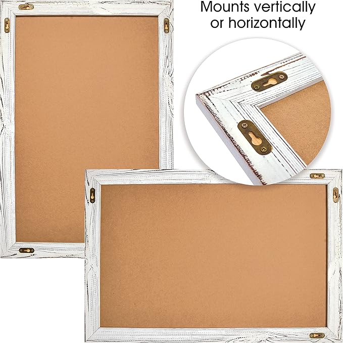 - REAL WOOD FRAME - 20" x 30" Heavyweight, rustic, weathered painted frame made of pine, with metal hardware built into the backside of the frame to hang vertically or horizontally