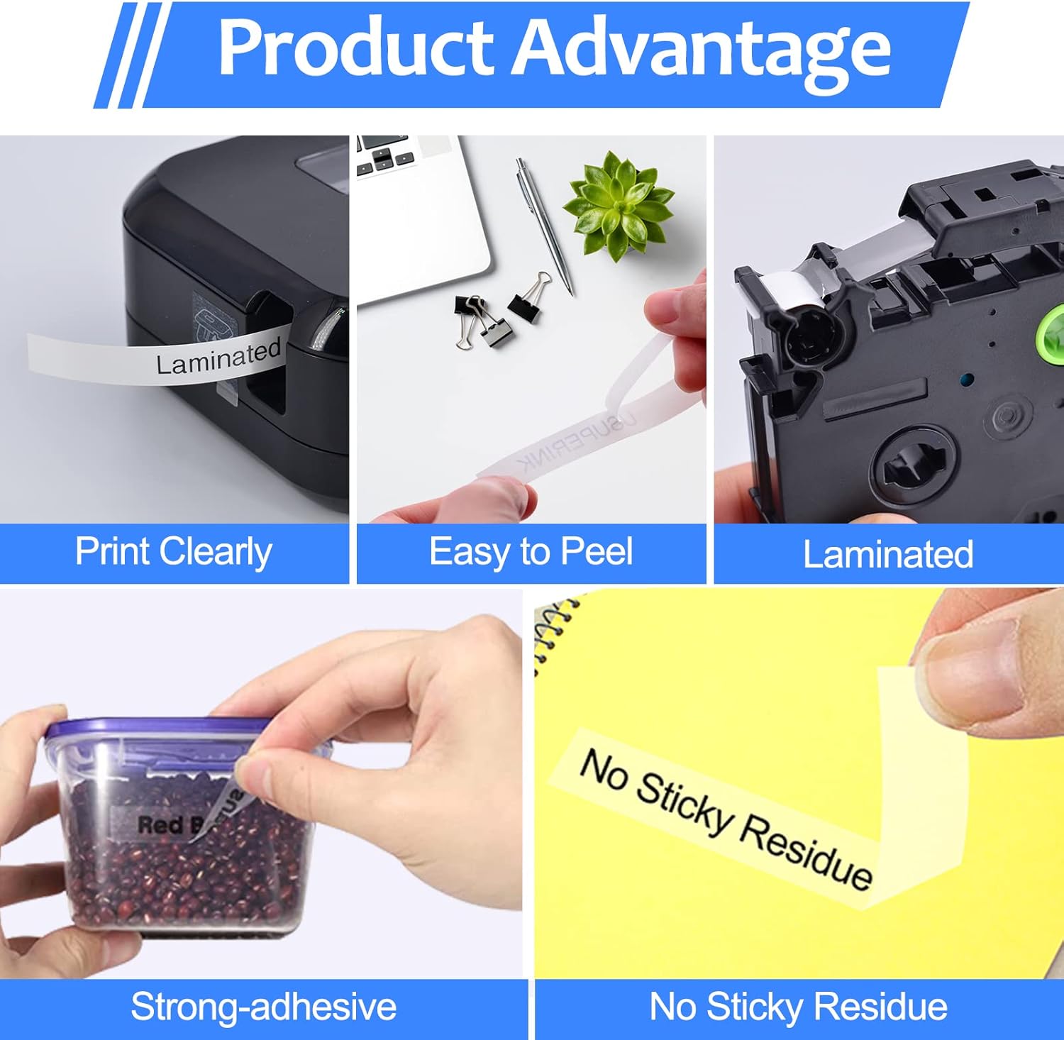 - USUPERINK Alternative Compatible Label Tapes Replacement for Brother Ptouch Label Refill TZe-131 TZe131 TZ-131 TZ131 AZe-131 12mm 0.47 inch 1/2'' Standard Laminated Label Maker Tapes.