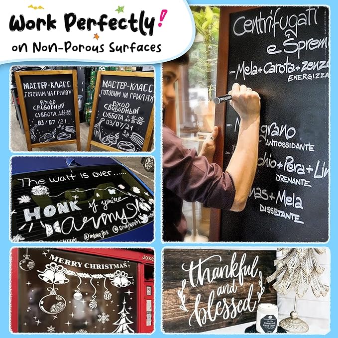 - 【Purchase Without Risk】Your satisfaction is our number one priority. Any of your white window chalk markers pen concern, please simply contact us and we will solve your liquid chalk pens within 24 hours. This washable white chalk marker pen for car window also can be a perfect white liquid chalk markers pen gift for teacher, kids, artists, businesses, family, neighbors, friends or any one who love painting on Birthday, Party, Anniversary, Halloween, Thanksgiving, Christmas or New Years