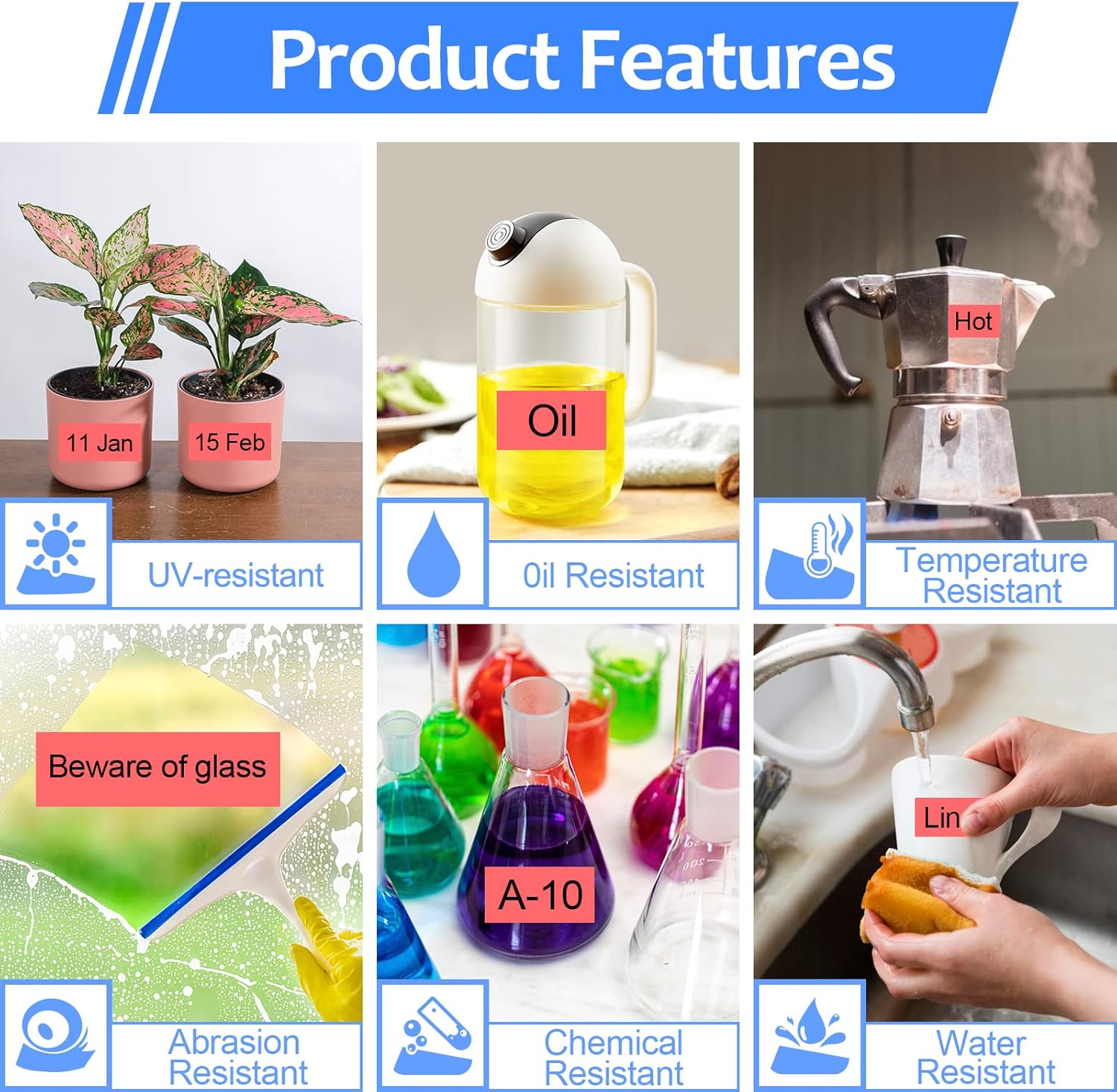 - These laminated label tapes are water resistant/waterproof, grime resistant, grease resistant, temperature resistant, abrasion resistant, chemical resistant as well as fading resistant.
