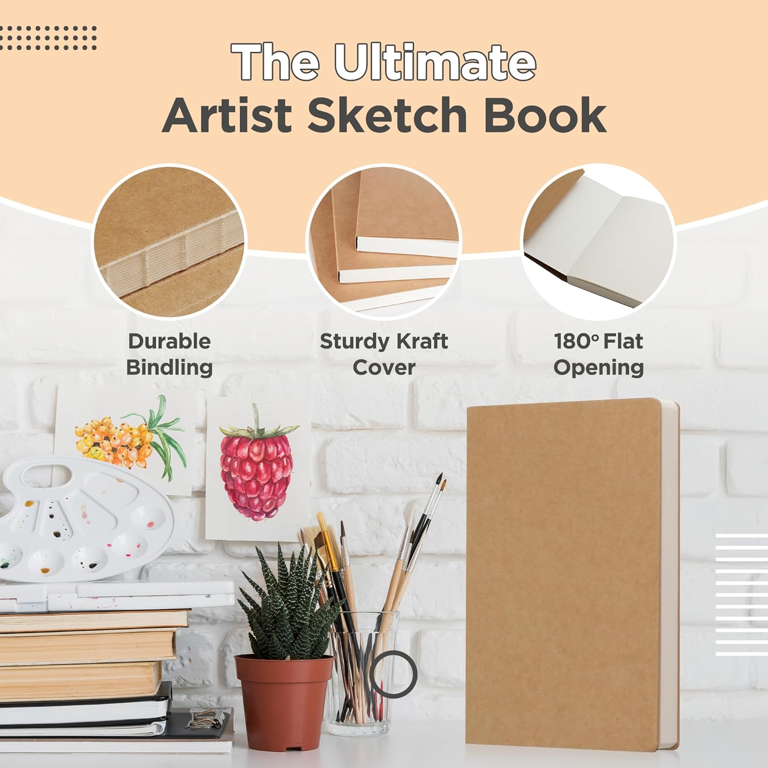 Sketch Book, 3 Pack Blank Drawing Notebook, 5.5" x 8.25" Kraft Cover Sketchbook, 224 Pages/112 Sheets 100gsm Plain Paper