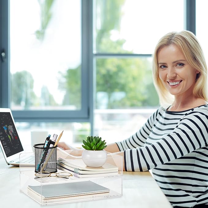 - Clear Acrylic: the clear desk organizer adopts transparent acrylic material, makes it easy for you to see the contents clearly and visually, saving you a lot of time when you have an emergency meeting and keeping you out of the hassle of finding things