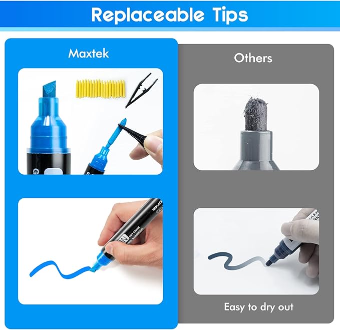 - Long-lasting Use: Say goodbye to wasted markers with our 18 replaceable pen tips, making it easy to replace old tips with new ones and extend the life of your glass whiteboard markers
