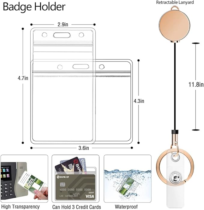• 【Waterproof Dustproof & Soft Sturdy】Our horizontal and vertical badge holder card pouches are waterproof. can easily hold 3pcs credit card size cards. The name badge holder is made of premium PVC material, non-toxic, odorless. Both sides of each badge holder are transparent which makes scanning ID seasy
