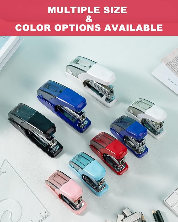 - 👉[20 Sheet Capacity] - This compact design half strip stapler holds up to 50pcs 24/6 staples or 65pcs 26/6 staples, fits properly on smaller desks. Fully meet the daily work, office & school needs.