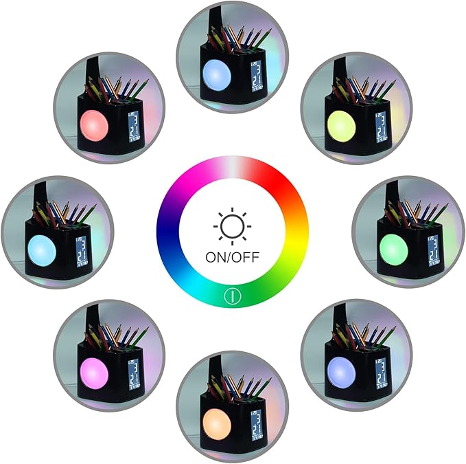 - ❤ Multifunctional Desk Lamp -- In addition to being used as a LED desk lamp, this lamp is additionally equipped with Color Changing Nightlight, Pen Holder, USB Charger and Clock Display Control Screen(Date,Time,Alarm,Temperature).You can use this great led desk lamp while working, studying, reading, and sleeping, which is very convenient. It is also a good choice for gift.