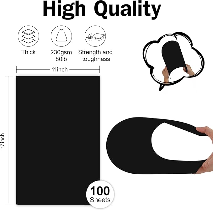 - Paper Dimension: Each package includes 100 sheets of black cardstock paper, measures 11 x 17 inches in ledger size, 230 grams in weight with full 98 brightness