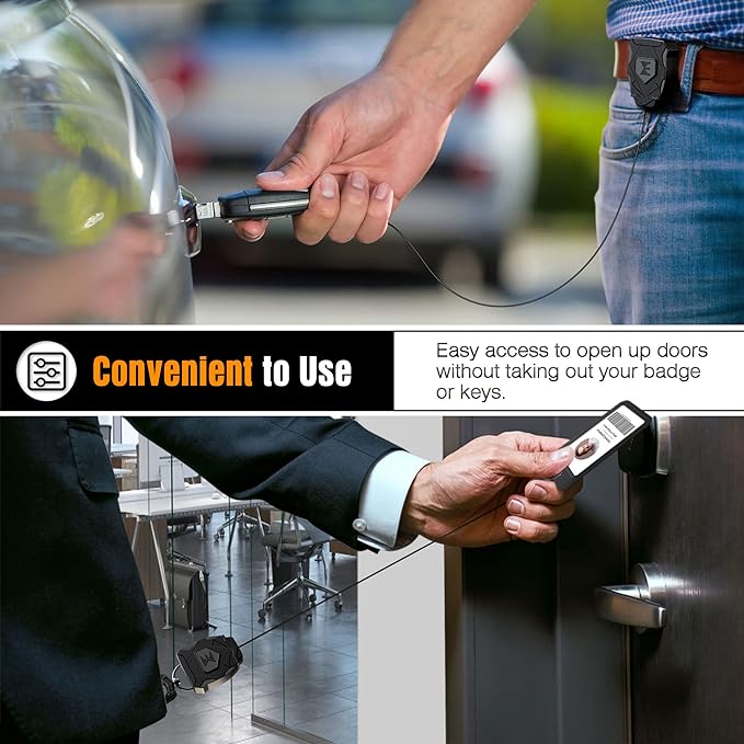 - 【Interval Locking Mechanism】 While many badge holder reels are retractable, most do not have any type of locking mechanism for convenience. This means you are always pulling on the cord and once you release it, the cord automatically retracts. Our retractable badge holder is built with a special interval locking mechanism that allows you to extend your cord and it locks at convenient lengths. This is great when you need to use your phone or other accessories for extended periods of time.