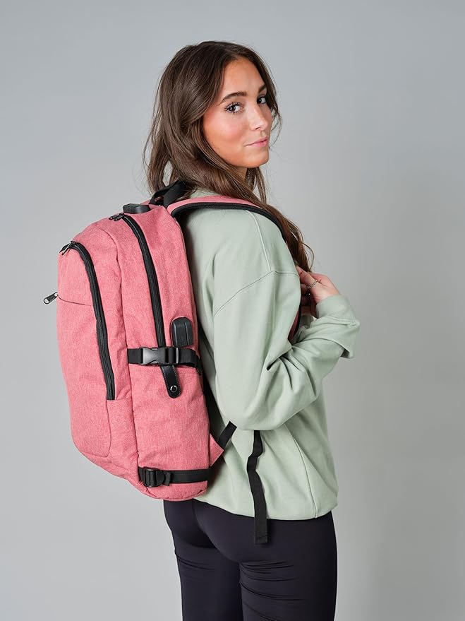 Varietyathletics 19" Laptop Backpack and Organizer Case Set USB Headset Port Anti-Theft Waterproof Travel Work College (Red)