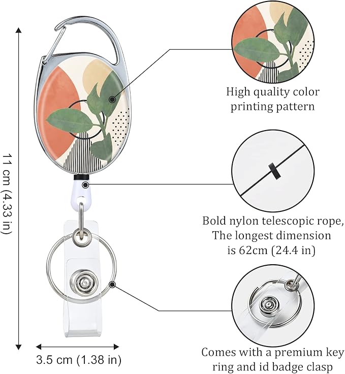 Badge Reels Retractable Double Sided Color Print Pattern Holders with Retractable Keychain and Badge Clip, Durable Nylon Rope, Foliage