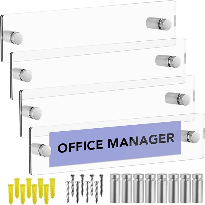 - Set of 4 - Sturdy & Elegant Clear Acrylic 2 Piece Wall Mount Name Plate Holder, Office Business Door Sign Holder with All Hardware Included.