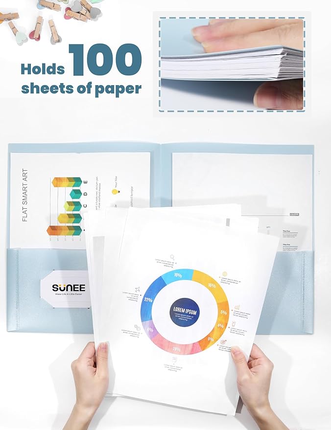 - STURDY: The heavy-duty plastic pocket folder is tear-resistant, waterproof, and dustproof. Better than the paper 2-pocket folder when outdoor. Perfect for students, teachers, staff to organize, store, and protect files, even the user is a naughty kid.