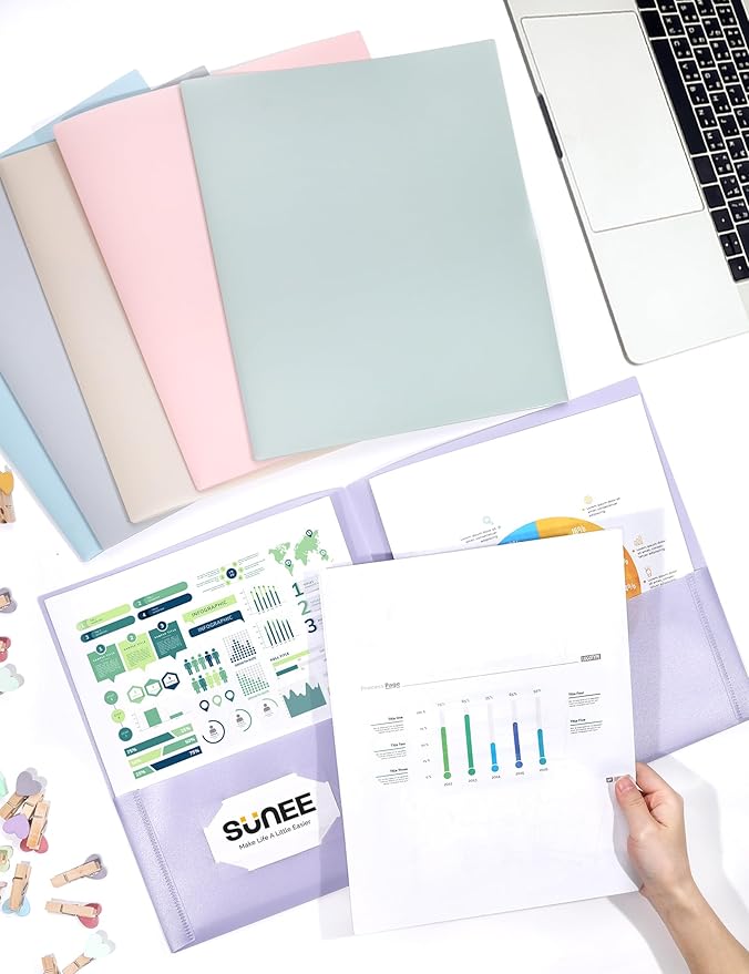 SUNEE 2 Pocket Folders (24 Pack, Pastel Colors) Heavy-Duty Plastic Folders with Pockets, Fit 8.5x11 Letter Size Paper, 2-Pocket File Folders for Kids, Home, School, Office