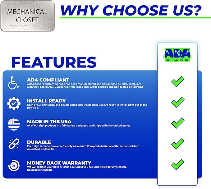 - ADA COMPLIANT AND GRADE 2 BRAILLE - Ensure accessibility for everyone with ADA compliant signs, featuring Grade 2 Braille and black lettering for clear, easy-to-read information in any office setting